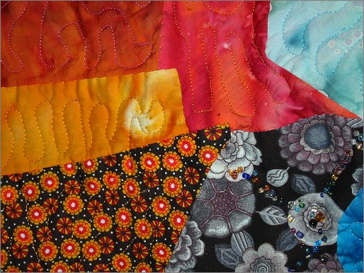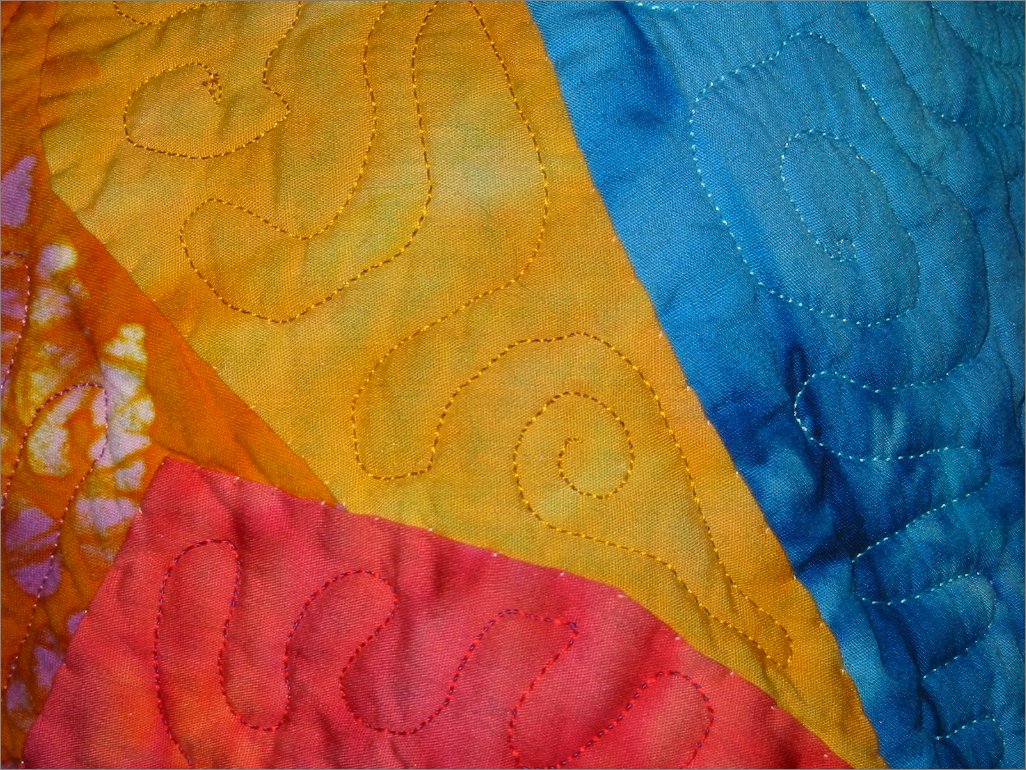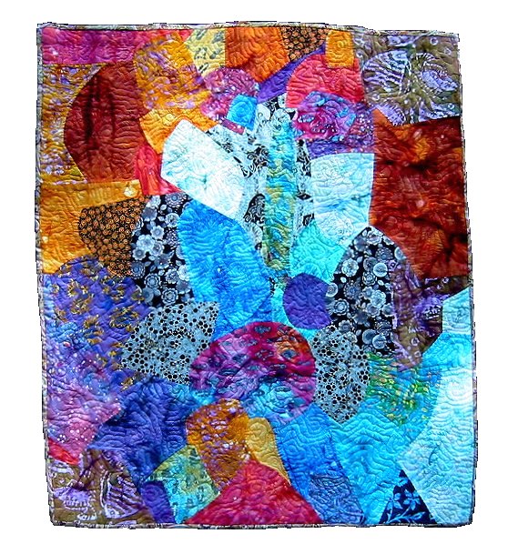Artist's Statement - "Capers Riot" This is another in the First Shift series of free form appliqued pieces. The color and pattern choices were spontaneous and influenced by music.