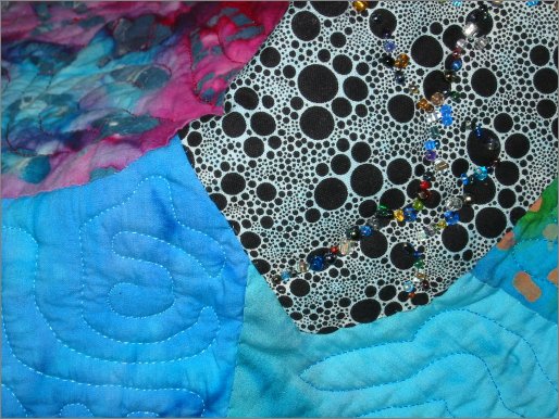 Materials and Techniques - commercial cottons, velvet,glass beads. hand appliqued and beaded,